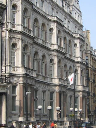日本大使館は、ピカデリー通り101番地だそうで、ピカデリーサーカスからはちょっと遠い所ではあるが、グリーンパークという公園を挟んだ反対側はバッキンガム宮殿という絶好のロケーション。建物の壁からは日の丸が掲げられていて、入り口の横には「日本国大使館」と書かれたプレートが貼られている。入り口を入るとまずはセキュリティーチェック。これは空港のと同じ。それを過ぎると階段を数段上がって窓口があり、中に座っている係官が
