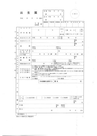 といわれる(ということは、病院に出生の確認を取らずに登録する、ってことなんだ・・・そんなんでいいのか?)。それで、子供の名前・性別・生年月日、両親の名前・住所・出生地・国籍などを問われる(必要事項のみの簡単な質問ばかり)。