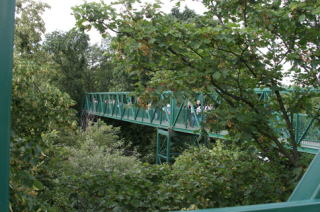 階段を上がって歩道橋で道路の反対側に降り、金網で区切られた通路を歩いて歩いて