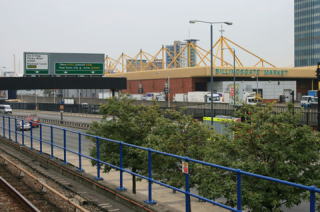 行き方は、ロンドンの中心からだとテムズ川の左岸(北岸)に沿った道を東へと走っていき、そのうちにA1203のLimehouse Linkというトンネルに吸い込まれていったら道なりにA1261のAspen Wayというのになっています。上をDLRの高架が横切ったら、右手に魚市場の建物が見えてきます。それを過ぎたらすぐに高架でないほうの側道へ抜け、(マクドナルドのある)ラウンドアバウトをぐるっと回り、さらにもう一つラウンドアバウトを通ったら、そこは魚市場の巨大な駐車場です。